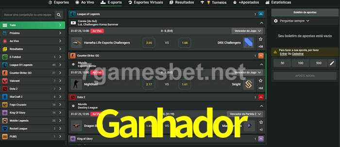 O Ganhador oferece uma grande seleção de opções de apostas em e-sports com probabilidades competitivas